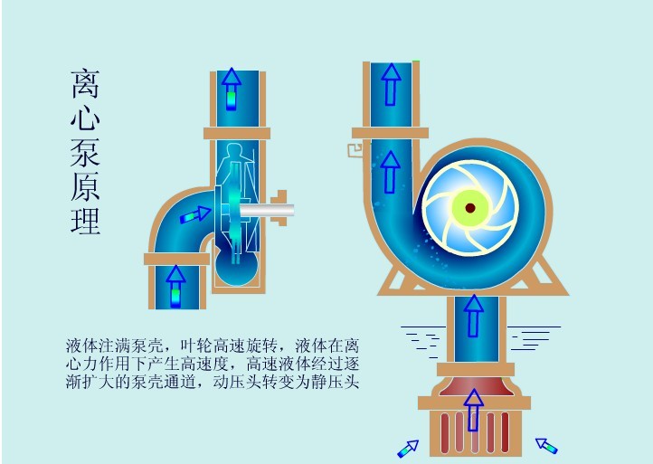 管道離心泵依靠旋轉(zhuǎn)葉輪對液體的作用把原動機的機械能傳遞給液體。由于離心泵的作用液體從葉輪進口流向出口的過程中,其速度能和壓力能都得到增加,被葉輪排出的液體經(jīng)過壓出室,大部分速度能轉(zhuǎn)換成壓力能,然后沿排出管路輸送出去,這時,葉輪進口處因液體的排出而形成真空或低壓,吸水池中的液體在液面壓力(大氣壓)的作用下,被壓入葉輪的進口,于是,旋轉(zhuǎn)著的葉輪就連續(xù)不斷地吸入和排出液體。